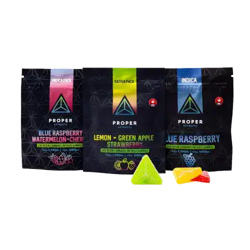 PROPER EXTRACTS PREMIUM LIVE RESIN INFUSED GUMMIES – LEMON GREEN APPLE STRAWBERRY – 1080MG THC